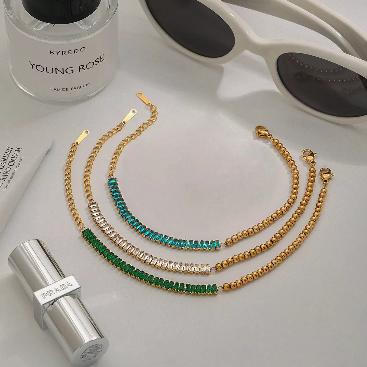 18K Gold-Plated Stainless Steel Rhinestone Chain Bracelet