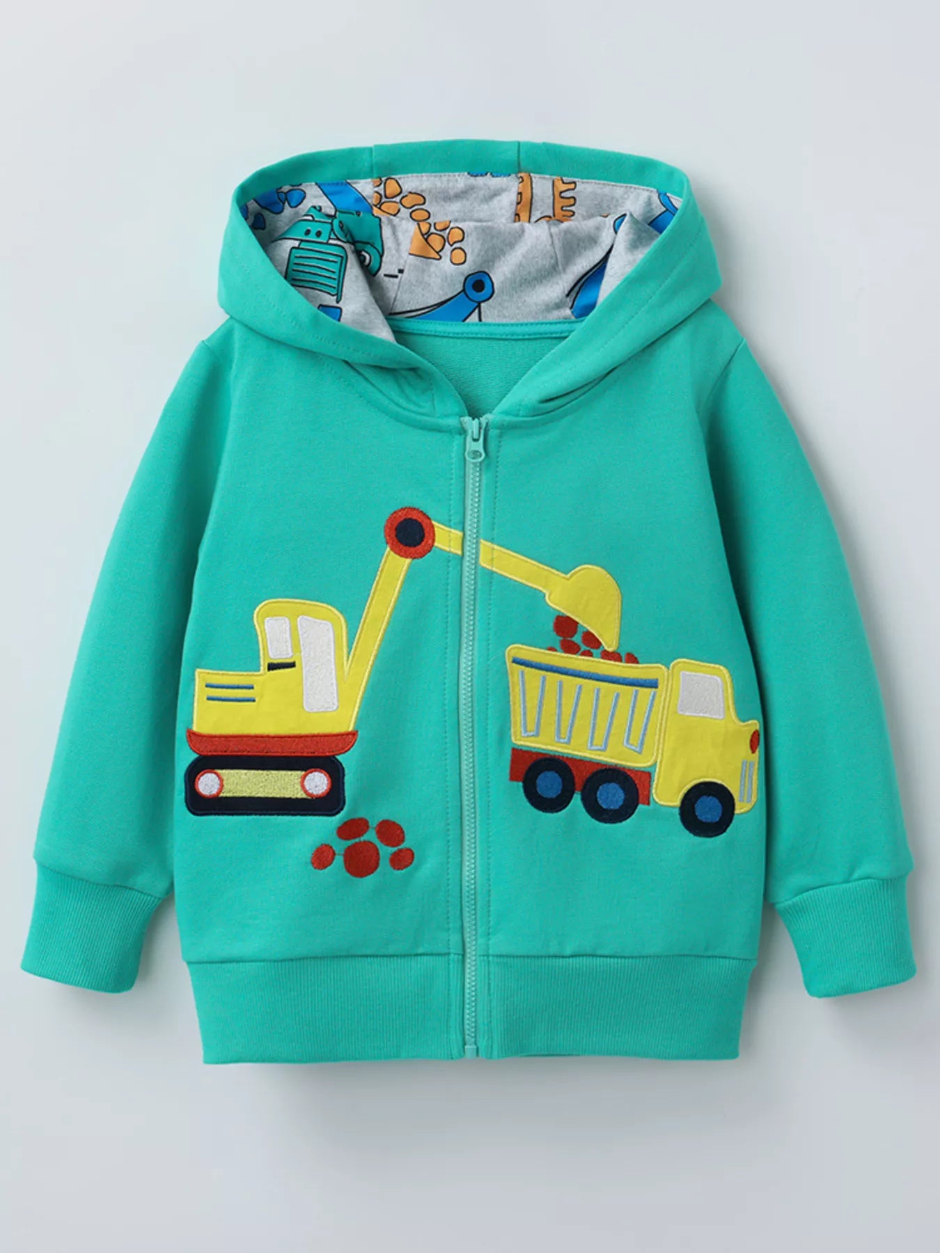 Children's Cartoon Construction Vehicle Zip-Up Hoodie