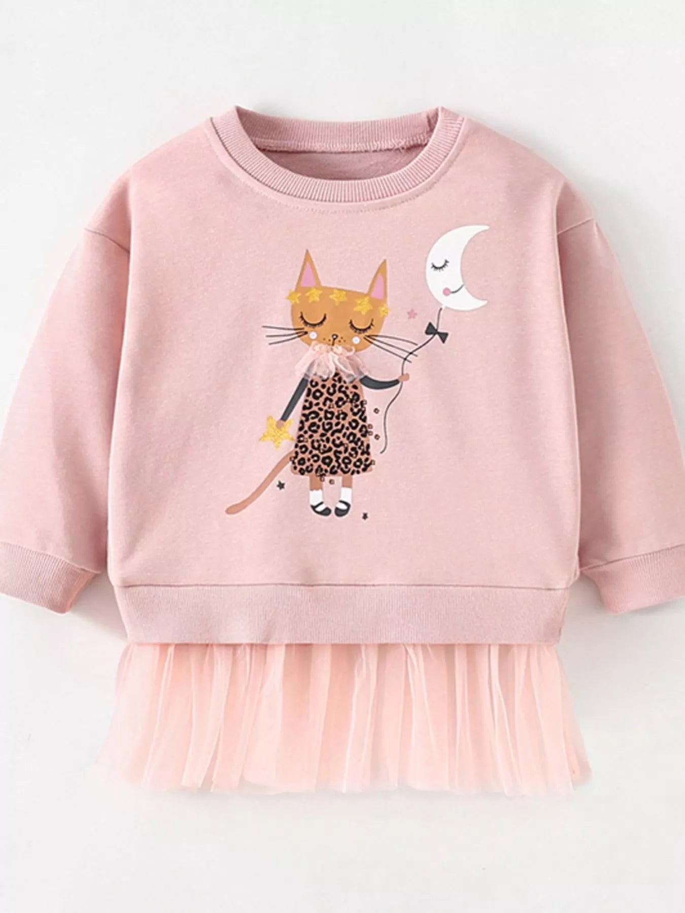 Children's Cute Cat Graphic Crew Neck Sweatshirt