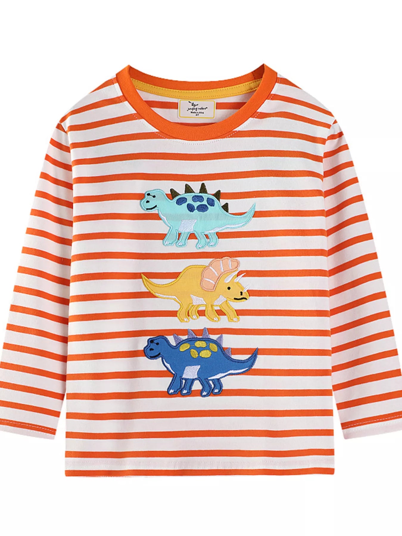 Children's Dinosaur Applique Striped Long Sleeve T-Shirt