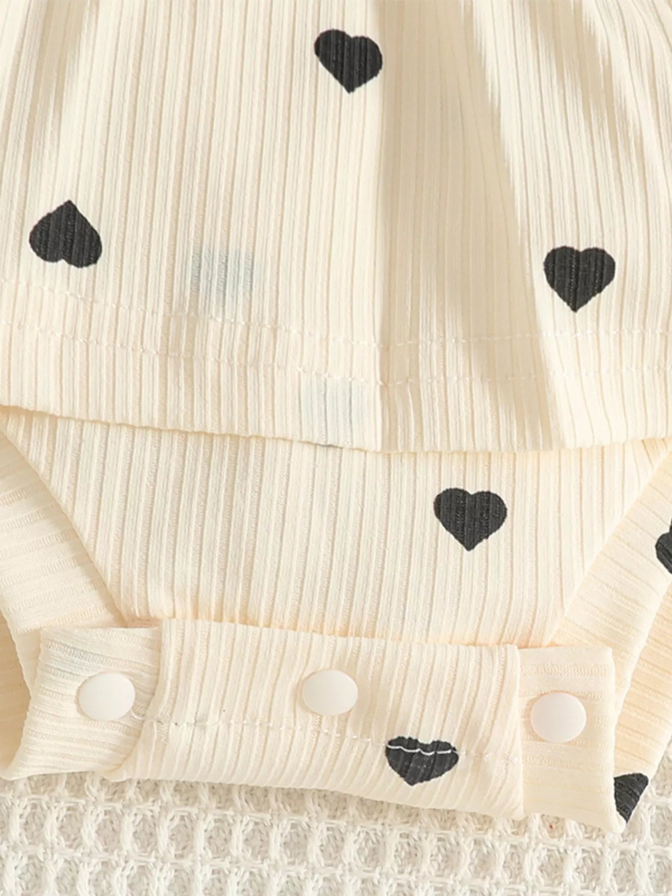 Children's Heart Print Ruffle Trim Bodysuit Dress with Headband