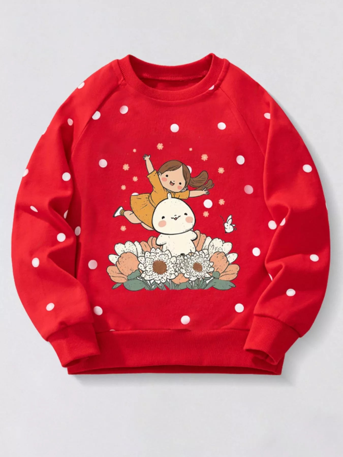 Children's Polka Dot Cartoon Graphic Crew Neck Sweatshirt