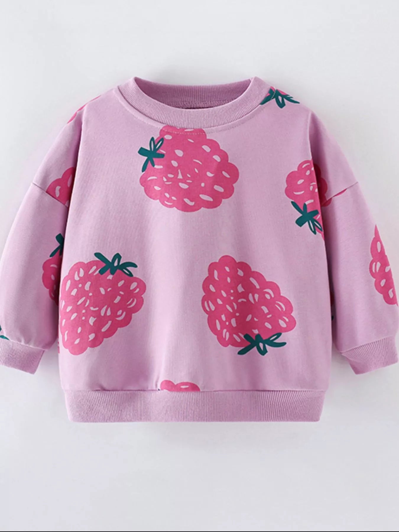 Children's Strawberry Print Crew Neck Casual Sweatshirt