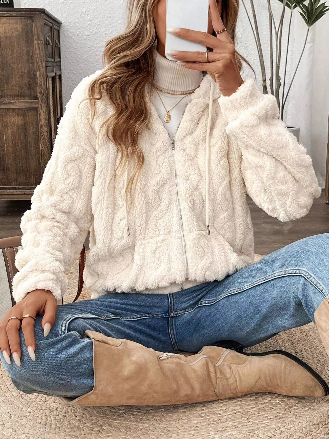 Drawstring Zip-Up Fleece Hooded Outerwear