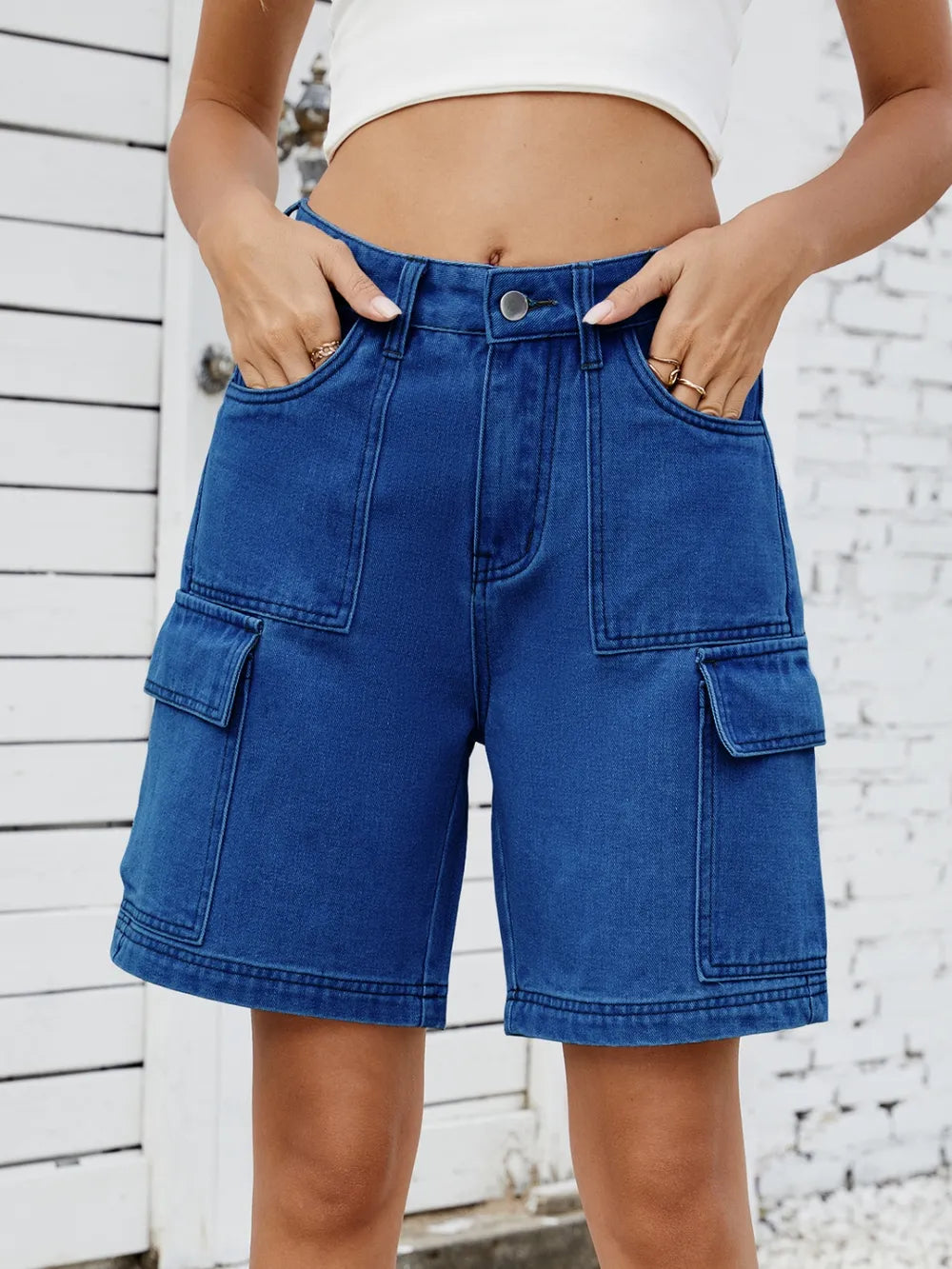 High Waist Denim Shorts with Cargo Pockets