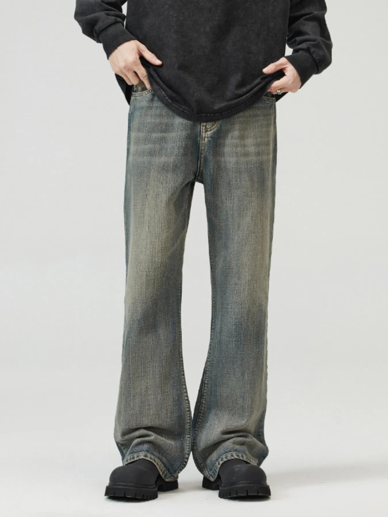 Men's Full Size Vintage Wash Wide Leg Jeans Plus Size