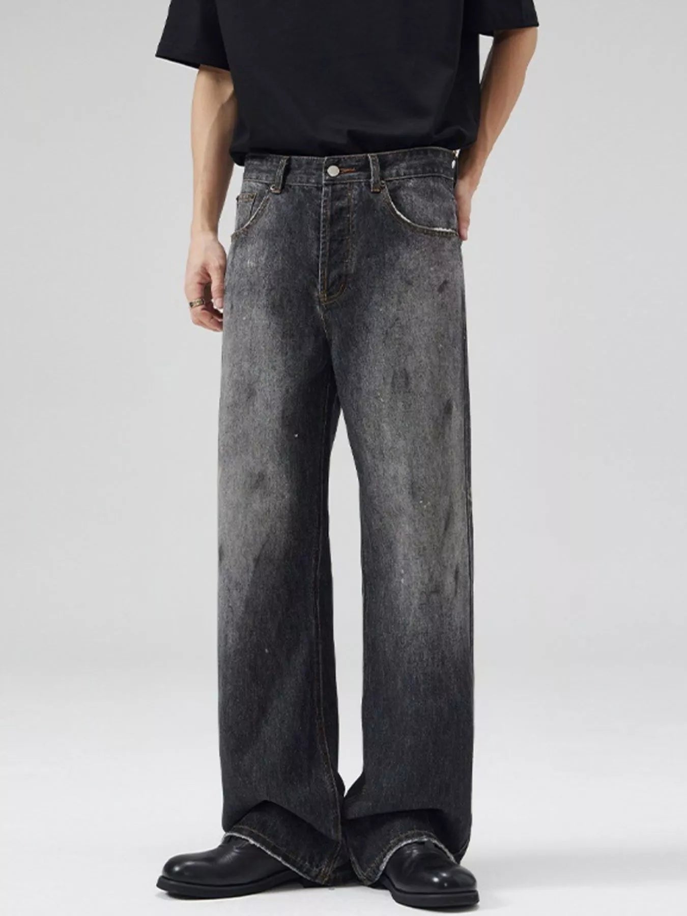 Men's Full Size Vintage Wash Wide Leg Jeans Plus Size