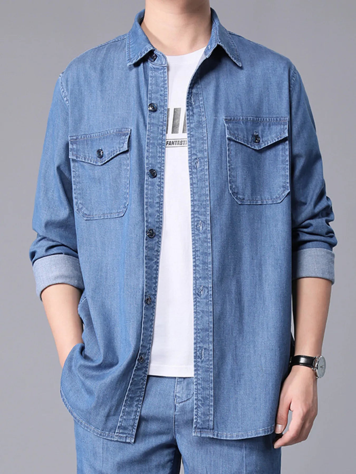 Men's Full Size Washed Long Sleeve Denim Shirt Plus Size