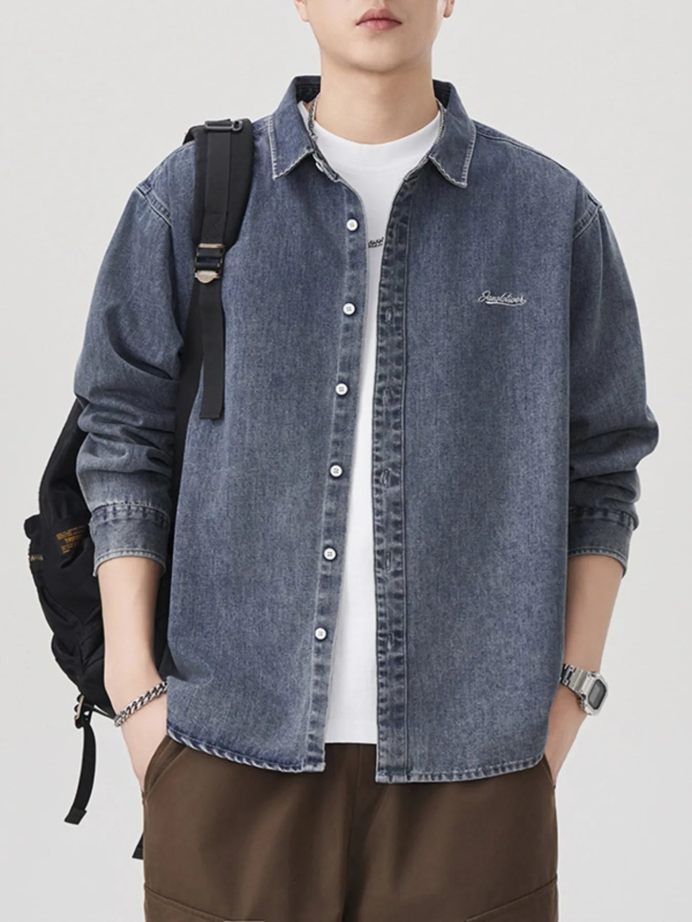 Men's Plus Size Button Down Denim Shirt