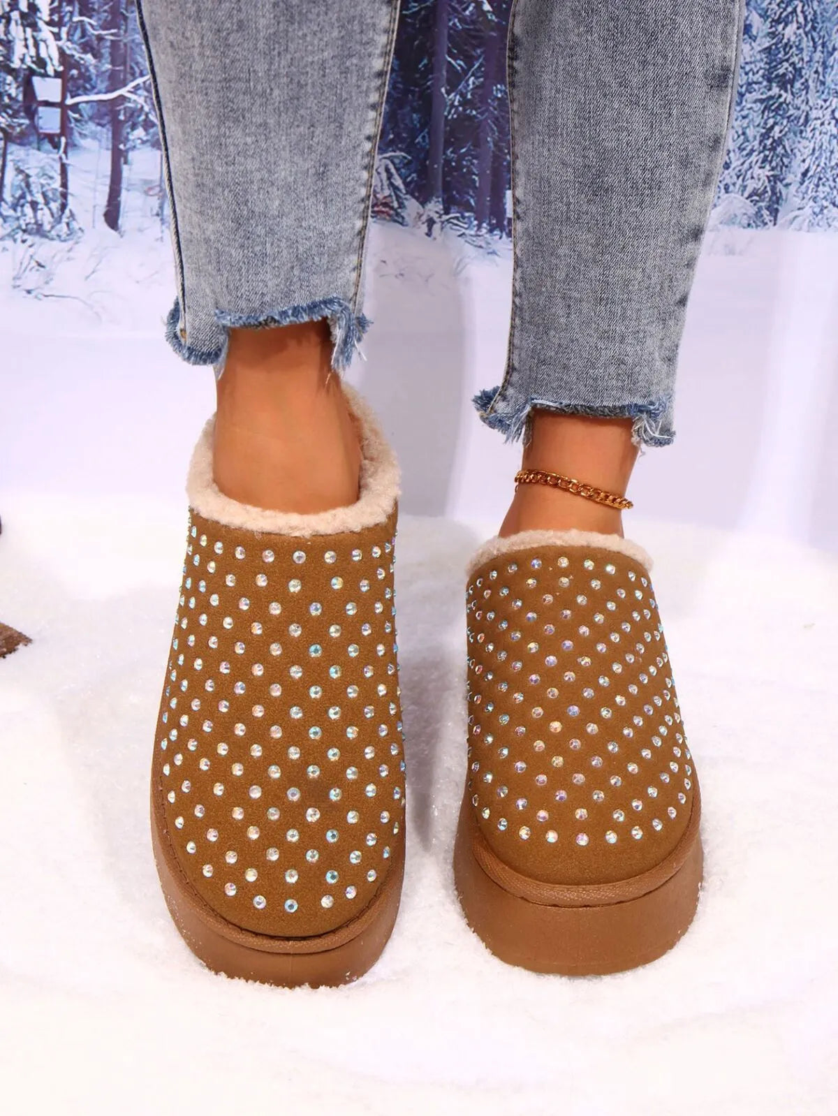Rhinestone Round Toe Platform Slippers
